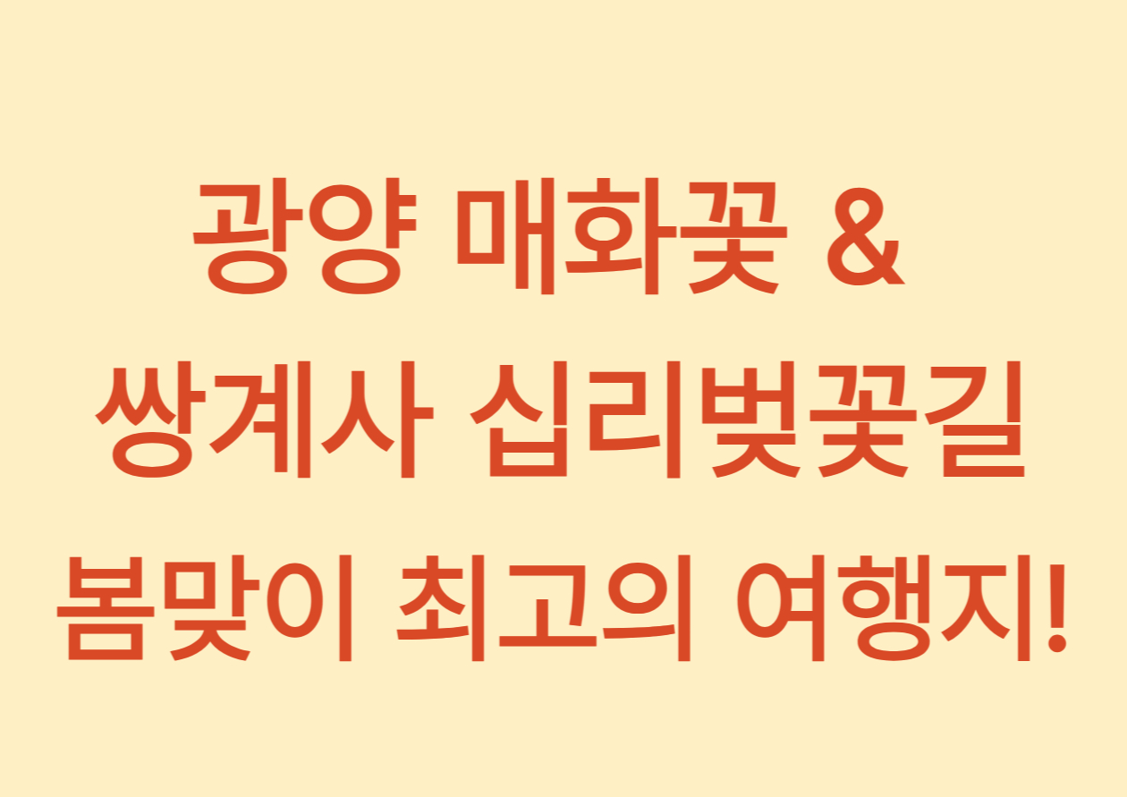 오늘은 광양 매화마을과 쌍계사 십리벚꽃길의 매력을 한눈에 살펴보도록 할게요! 💕